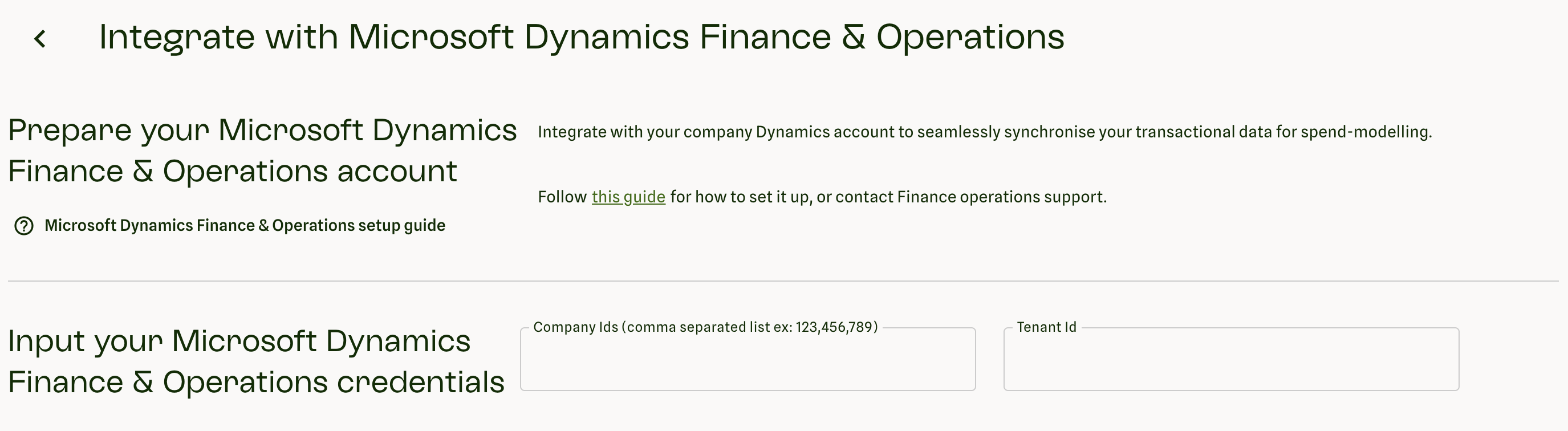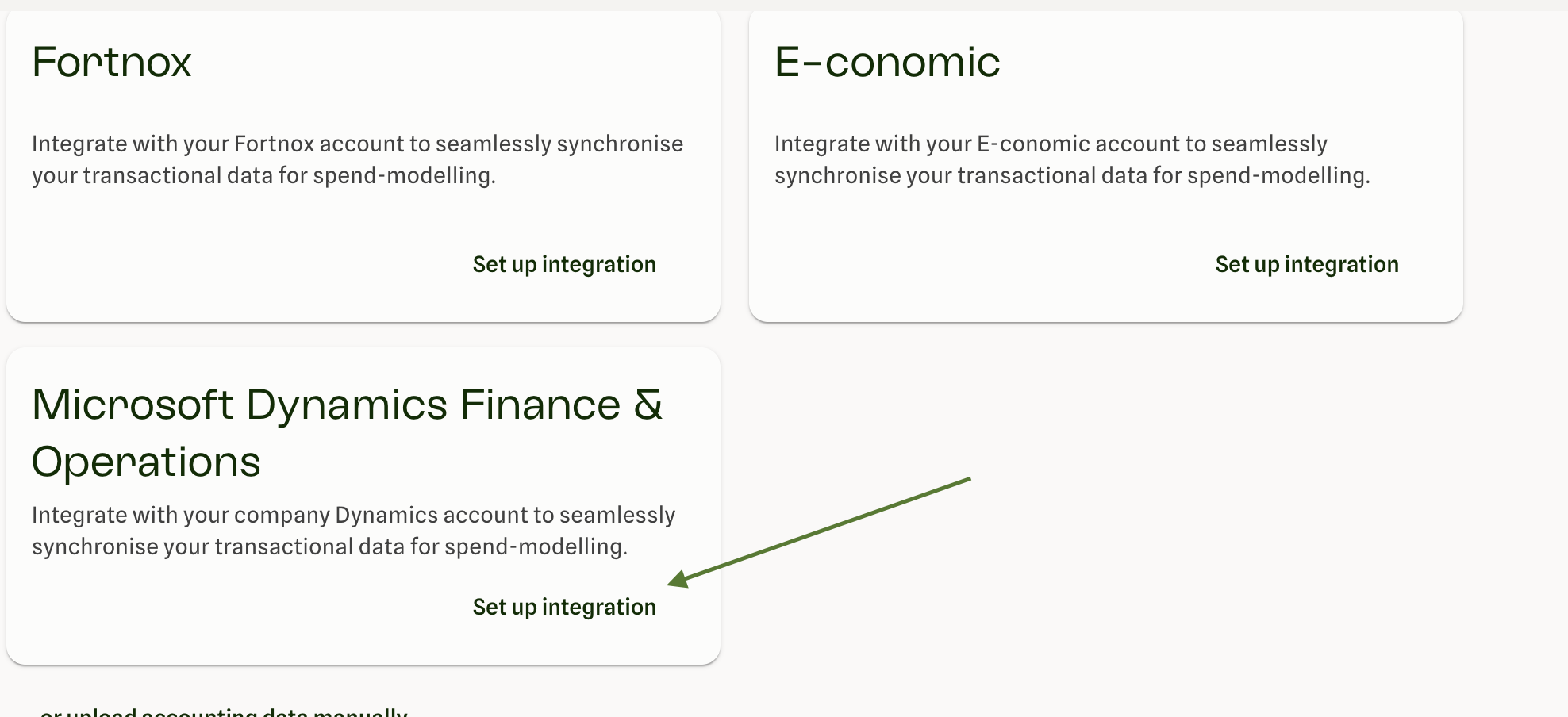 Click "Set up integration" under Microsoft Dynamics Finance & Operations
